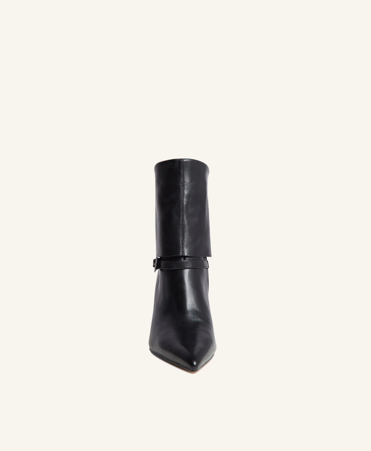 Matilda is designed for impact. This high-fashion ankle boot combines a sharp pointed toe with a dramatic flared heel for a silhouette that’s pure power dressing. The folded leather cuff and polished buckle strap add a touch of attitude, making Matilda the ultimate statement piece for nights out or elevated daywear.
